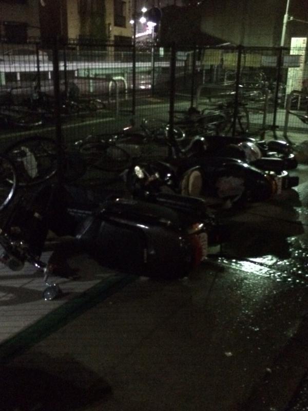 「突風の影響で窓ガラスが割れたようだ」とツイッターで画像が出回る。