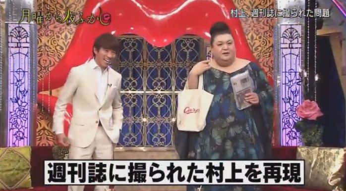 番組開始からマツコがフライデーに撮られた村上の姿「広島カープのバッグ」と「英字新聞」を持って登場し、フライデーの真相について言及。