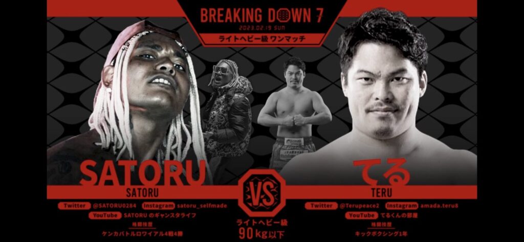 ラッパーでもあるsatoruは、欠場を発表する前に「命を狙われてる」と意味深なツイートをしていた。その後、何者かに襲撃を受けたことをYouTube動画で報告し、今回の「ブレイキングダウン7」の出場を欠場することとなった。