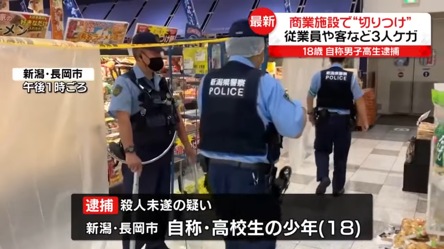 9月25日、長岡市のショッピングモールで、複数の客が刃物で切り付けられる事件の犯人が18歳の高校生だったことが5chで話題になっている。