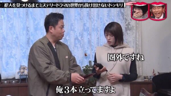 ドッキリとわかっていながら、謎解きはしっかりしていたので、与えられたヒントから徐々に真相に近づけていくのだが、感が鈍い津田はその謎解きに苦労してしまった。津田は、謎解きに苦労したのに、まったく笑わず、真剣に演技に徹した井川瑠音が注目され、SNSで「この女優は誰?」と話題となった。
