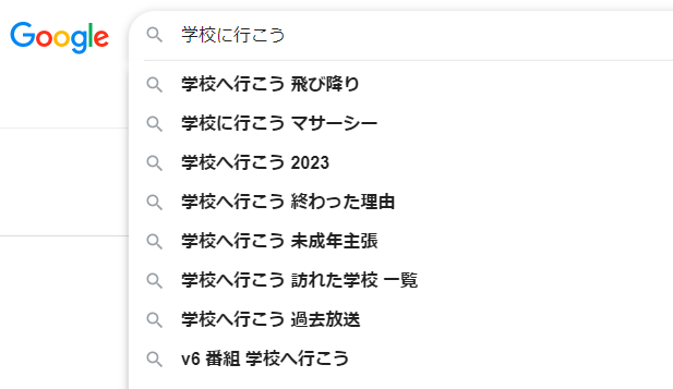 ネットで検索すると「学校へ行こう 飛び降り」という不吉な検索サジェストが出現する。
