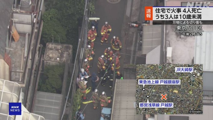 品川区戸越1丁目、戸越銀座駅の東側、戸越銀座商店街付近の住宅で火災が発生しています。救助された5名のうち4名が死亡、さらに死亡した4人のうち3人は子供のようです。#火事 #消防車 #サイレン #ヘリ pic.twitter.com/V5z2Wr9wET