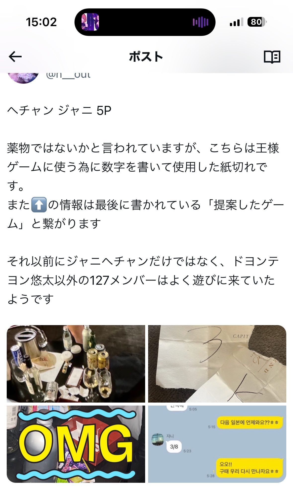 6月5日、韓国の男性アイドルグループ「NCT」メンバーであるヘチャンとジャニが港区のキャバ嬢による飲み会で性行為をしたという画像がSNSで拡散され、5chで話題になっている。